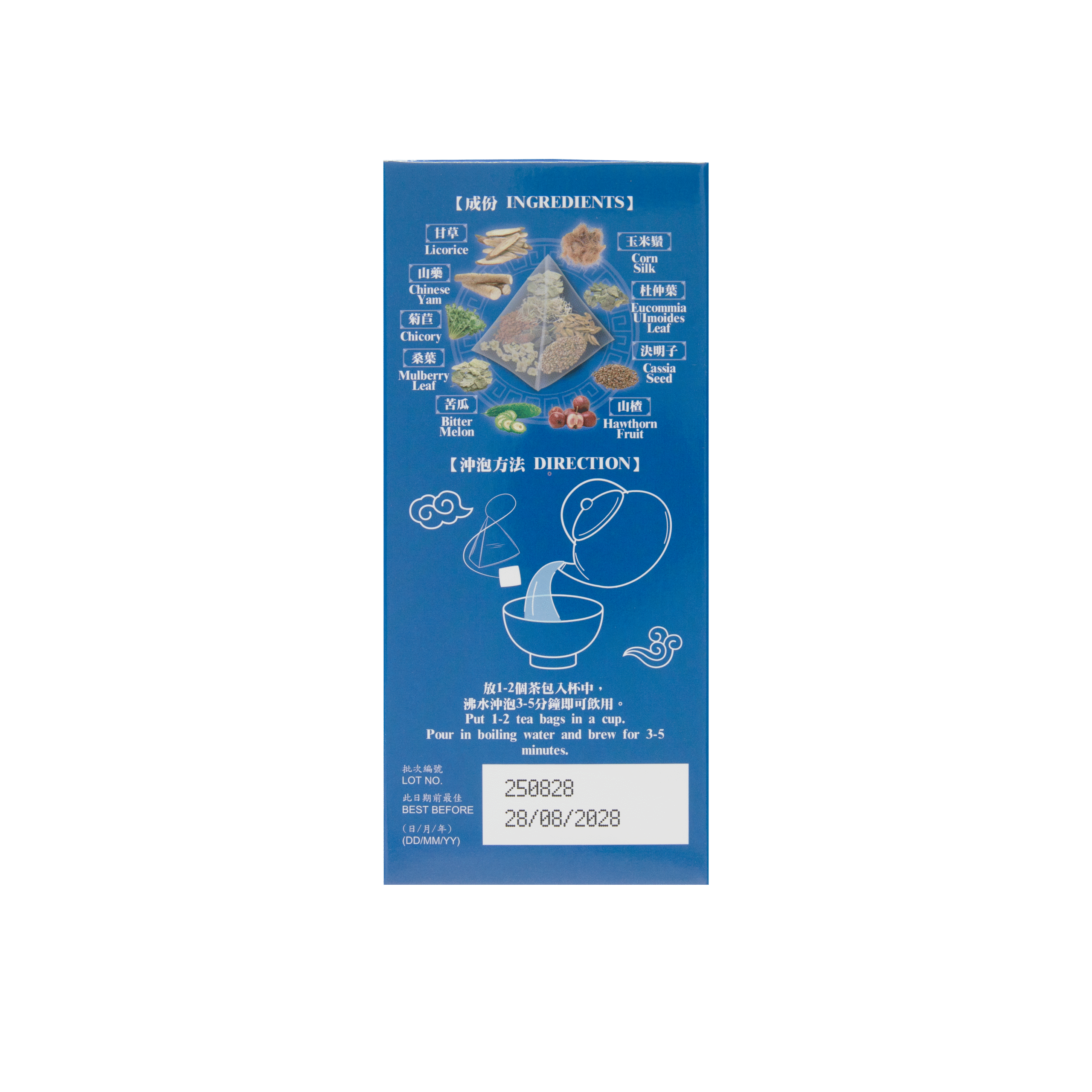 玉米鬚,桑葉,決明子,甘草,菊苣,山藥,杜仲葉,苦瓜,山楂。