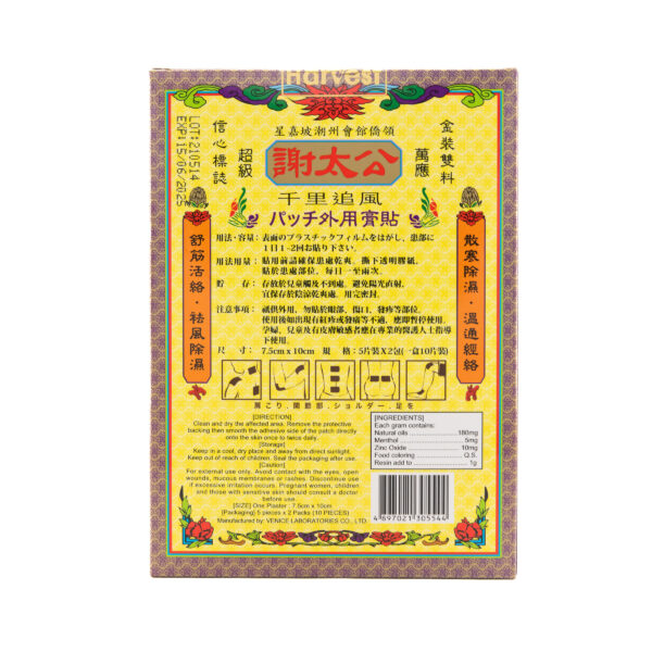 用於有效消除酸痛、疼痛、這些症狀產生於肌肉疲勞、肌肉疼痛、肩膀僵硬、腰痛、背痛、瘀傷、扭傷。