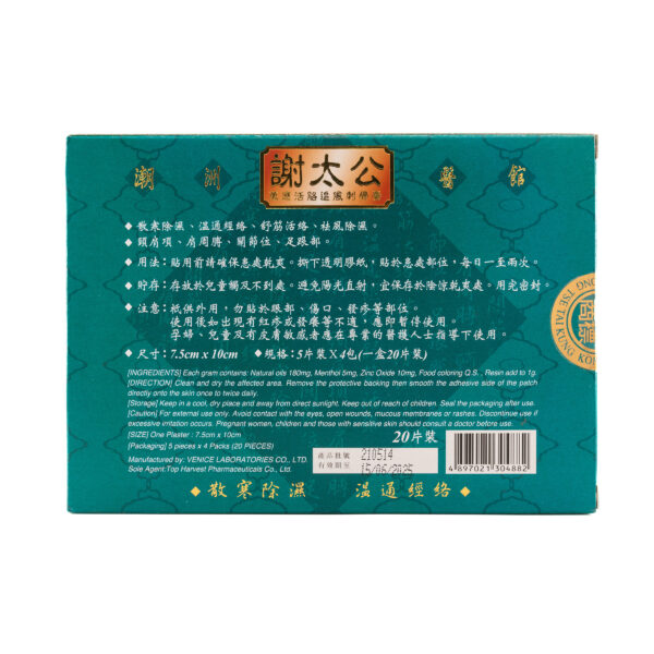 用於有效消除酸痛、疼痛、這些症狀產生於肌肉疲勞、肌肉疼痛、肩膀僵硬、腰痛、背痛、瘀傷、扭傷。