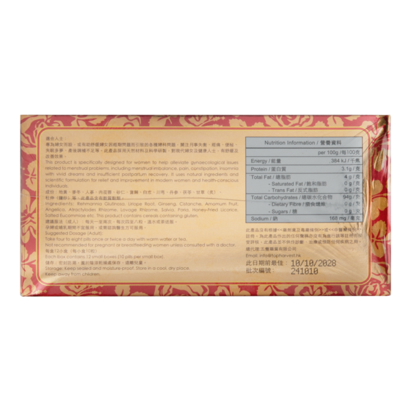 專為婦女而設,或有助舒緩婦女因經期問題而引致的各種婦科問題,關注月事失衡、經痛、便秘、失眠多夢、產後調補不足等。此產品採用天然材料及科學研製,對現代婦女及健康人士,有舒緩及改善效果。